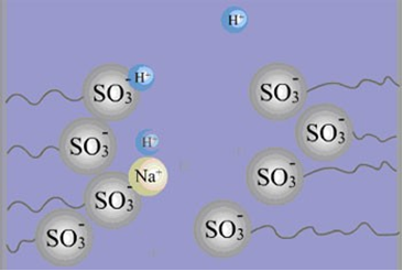 2R-SO3H+Ca2+----(R-SO3)2Ca+2H+